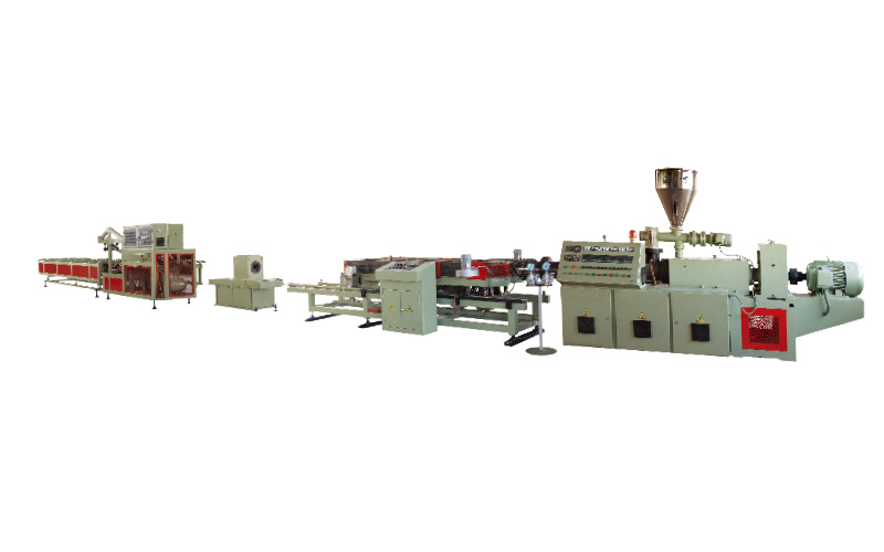 本機組由振動篩、高速混合機及冷卻機、塑料粉末加料機、錐形雙螺桿塑料擠出機,(單螺桿擠出機)機頭、雙壁波紋管成形機、塑料管擴口機、堆放架、冷水機、空氣壓縮機組成,主要用于生產(chǎn)PVC、PE等塑料雙壁波紋管及塑料單壁波紋管。